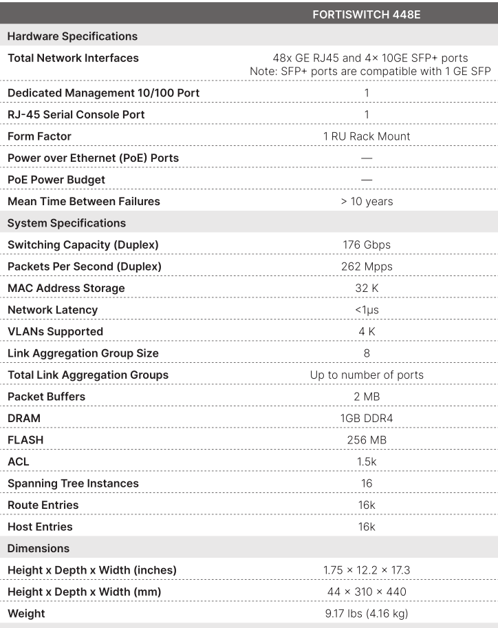 Layer 2/3 FortiGate switch controller compatible switch with 48 x GE RJ45 ports, 4 x 10 GE SFP+