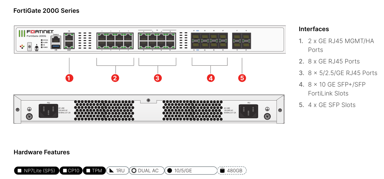 FortiGate 200G系列下一代防火墙(NGFW)结合了人工智能(AI)驱动的安全与机器学习(ML),能够在任何规模下提供威胁防护。深入了解您的网络,在应用、用户和设备成为威胁之前看到它们。