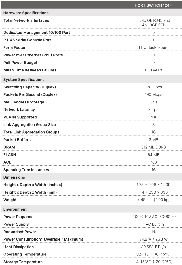 24x GE port + 4x SFP+ port + 1x RJ45 console. Fanless design.