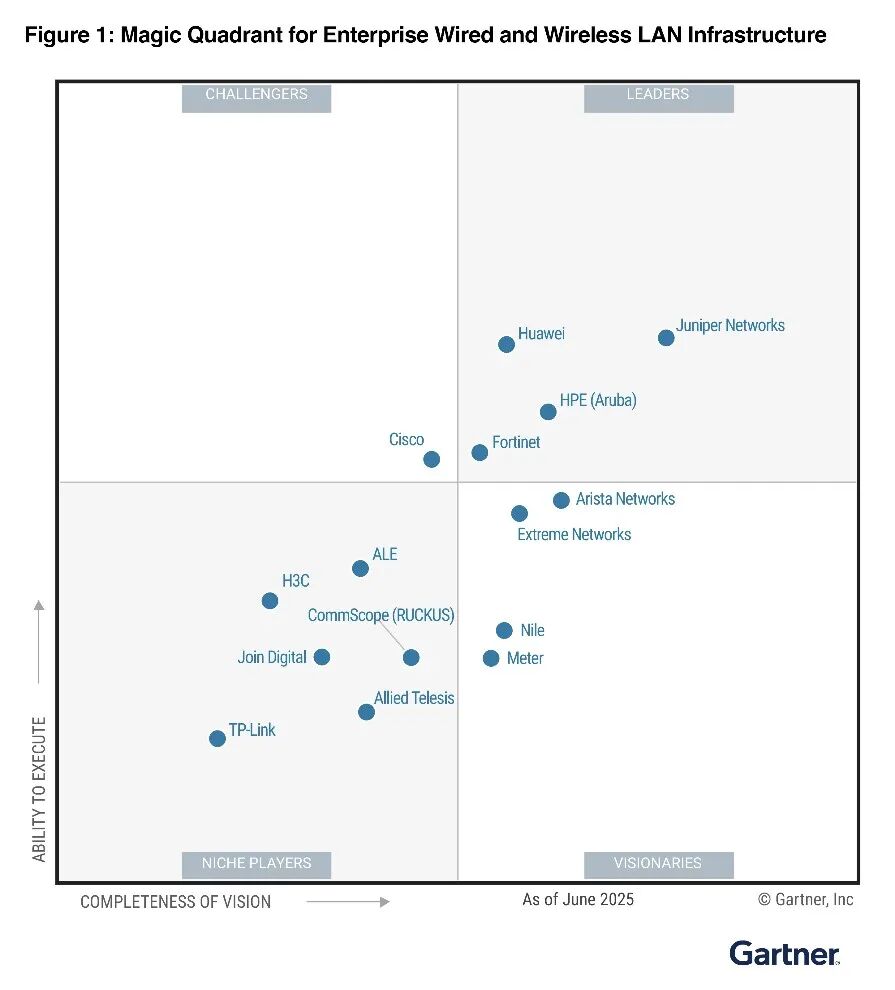 Fortinet被评为2025年Gartner®有线与无线局域网基础设施魔力象限™领导者